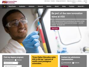 Established in 1885, Arizona State University is a non-profit public higher education institution located in the urban setting of the large town of Tempe (population range of 50,000-249,999 inhabitants), Arizona. This institution has also branch campuses in the following location(s): Mesa, Phoenix, Glendale, Lake Havasu City. Officially accredited and/or recognized by the Higher Learning Commission, Arizona State University (ASU Tempe) is a very large (uniRank enrollment range: over-45,000 students) coeducational higher education institution. Arizona State University (ASU Tempe) offers courses and programs leading to officially recognized higher education degrees such as bachelor degrees, master degrees, doctorate degrees in several areas of study. See the uniRank degree levels and areas of study matrix below for further details. This 134 years old higher-education institution has a selective admission policy based on entrance examinations and students' past academic record and grades. The admission rate range is 80-90% making this US higher education organization a least selective institution. International applicants are eligible to apply for enrollment.